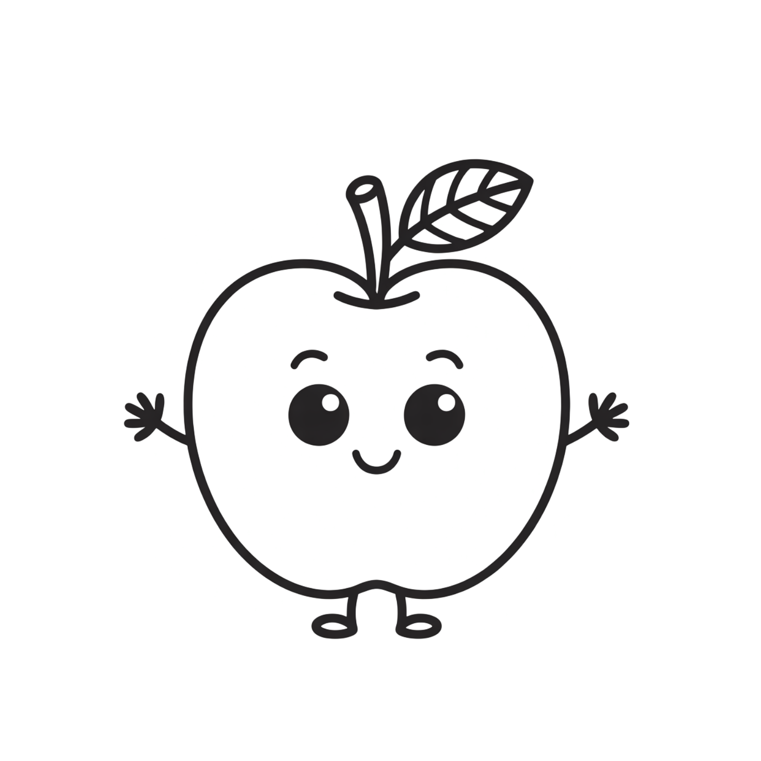 Create a sweet activity with this free printable cute apple coloring page, downloadable in SVG, PDF, and PNG formats. With a happy face and tiny arms, this adorable apple makes coloring both fun and educational for children.