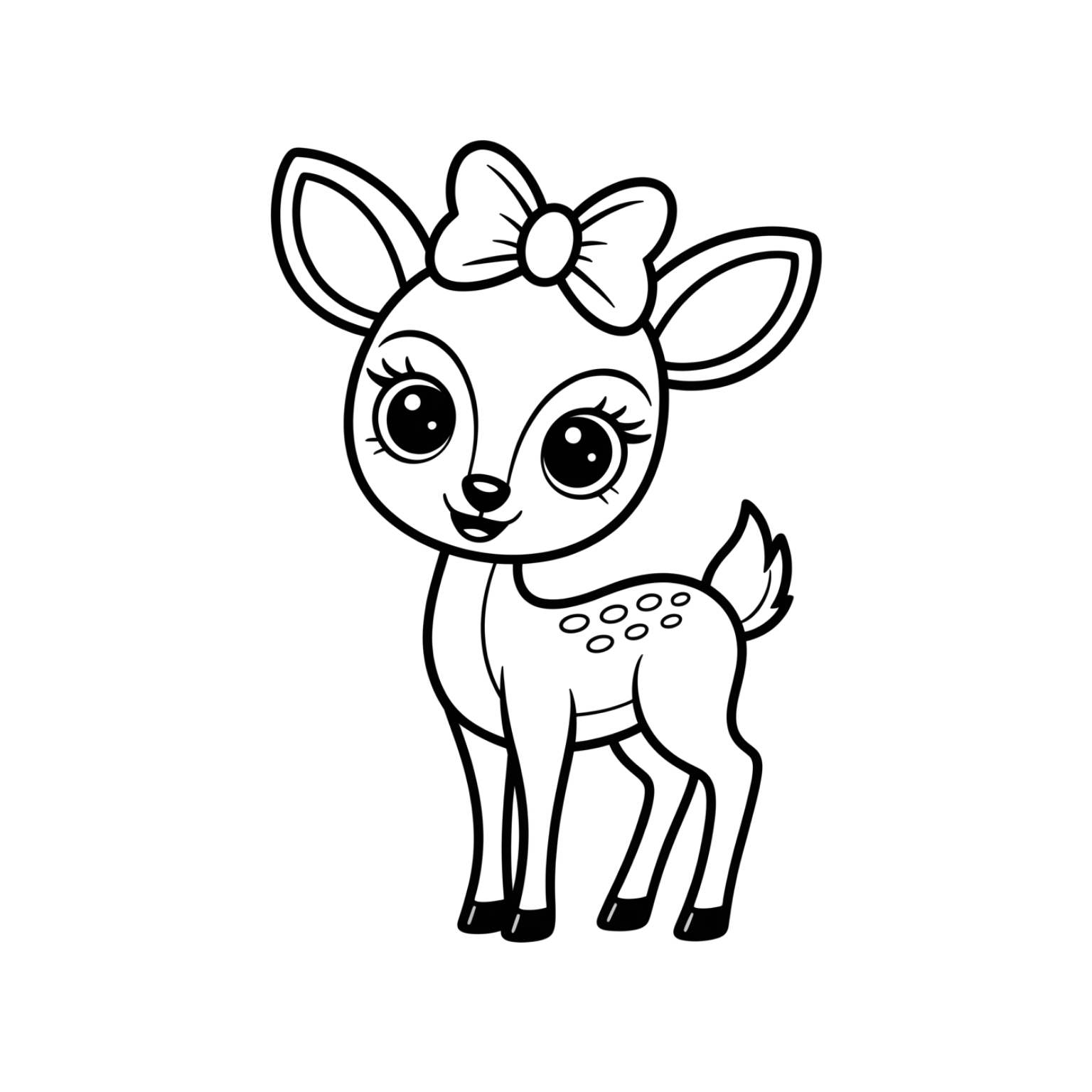 Cute deer coloring page in SVG, PDF, and PNG. A sweet young deer with a bow on its head, fun for animal lovers.