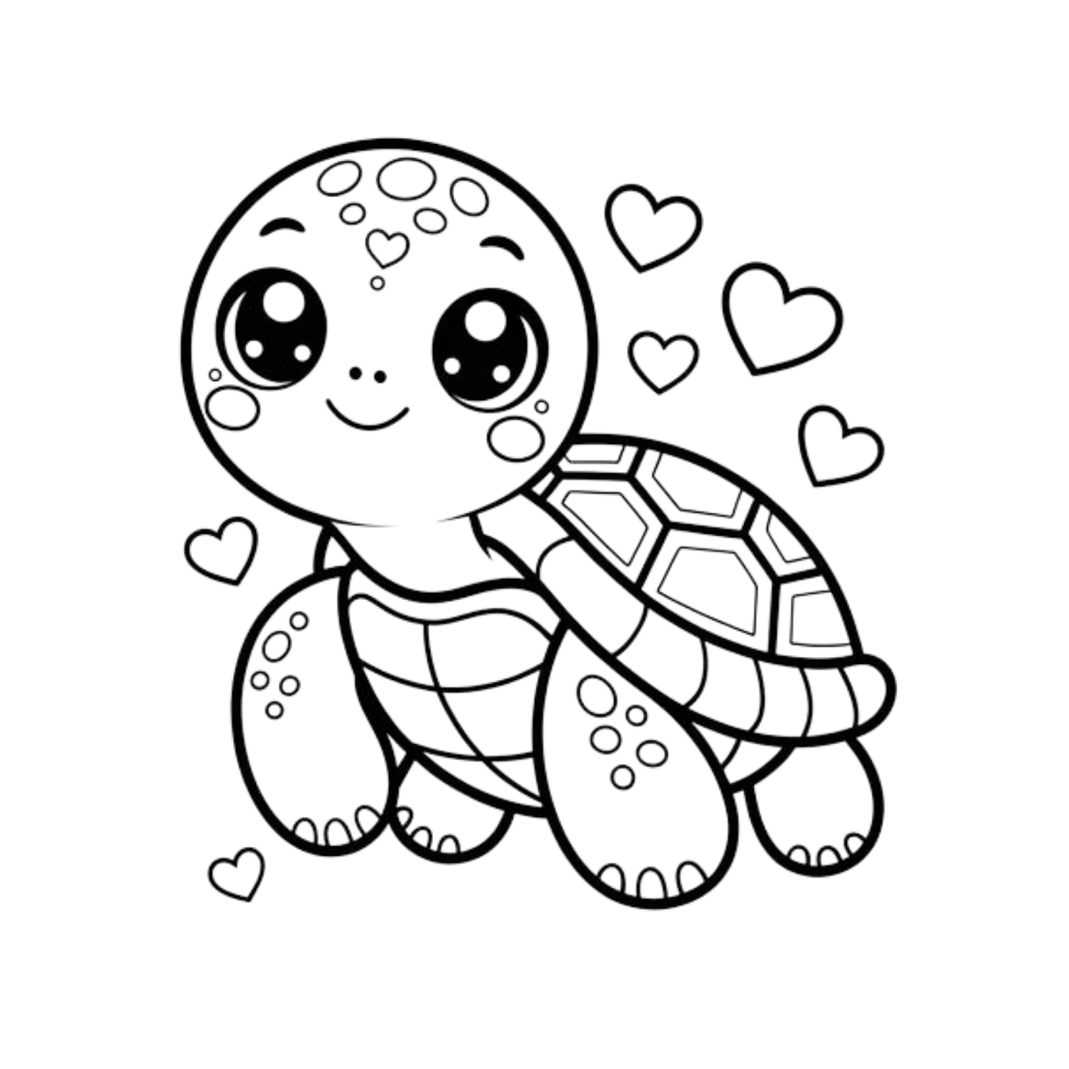 Dive into undersea fun with this free printable turtle coloring page, available in SVG, PDF, and PNG formats for maximum flexibility. Featuring a sweet, smiling turtle surrounded by hearts, this design is perfect for kids who love ocean animals.