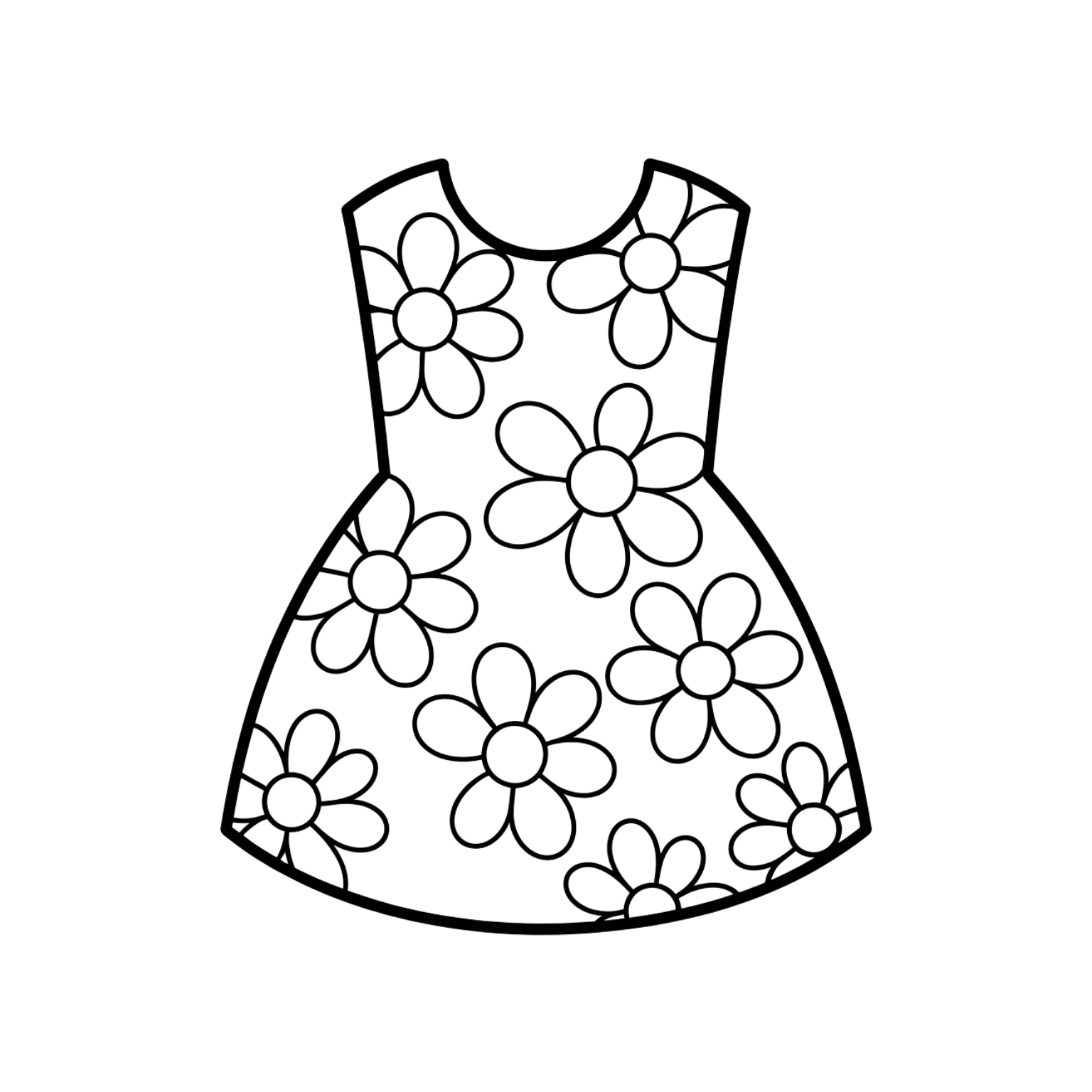 lower dress coloring page in SVG, PDF, and PNG. A sleeveless dress covered in big flowers, perfect for fashion-themed coloring.