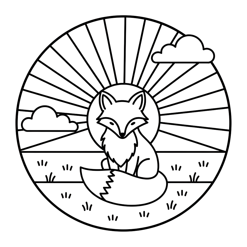 Relax and unwind with this free printable fox coloring page, available in SVG, PDF, and PNG formats for maximum flexibility. Featuring a peaceful fox sitting under the radiant sun with scenic clouds and fields, this calming design is a perfect activity for nature lovers of all ages.
