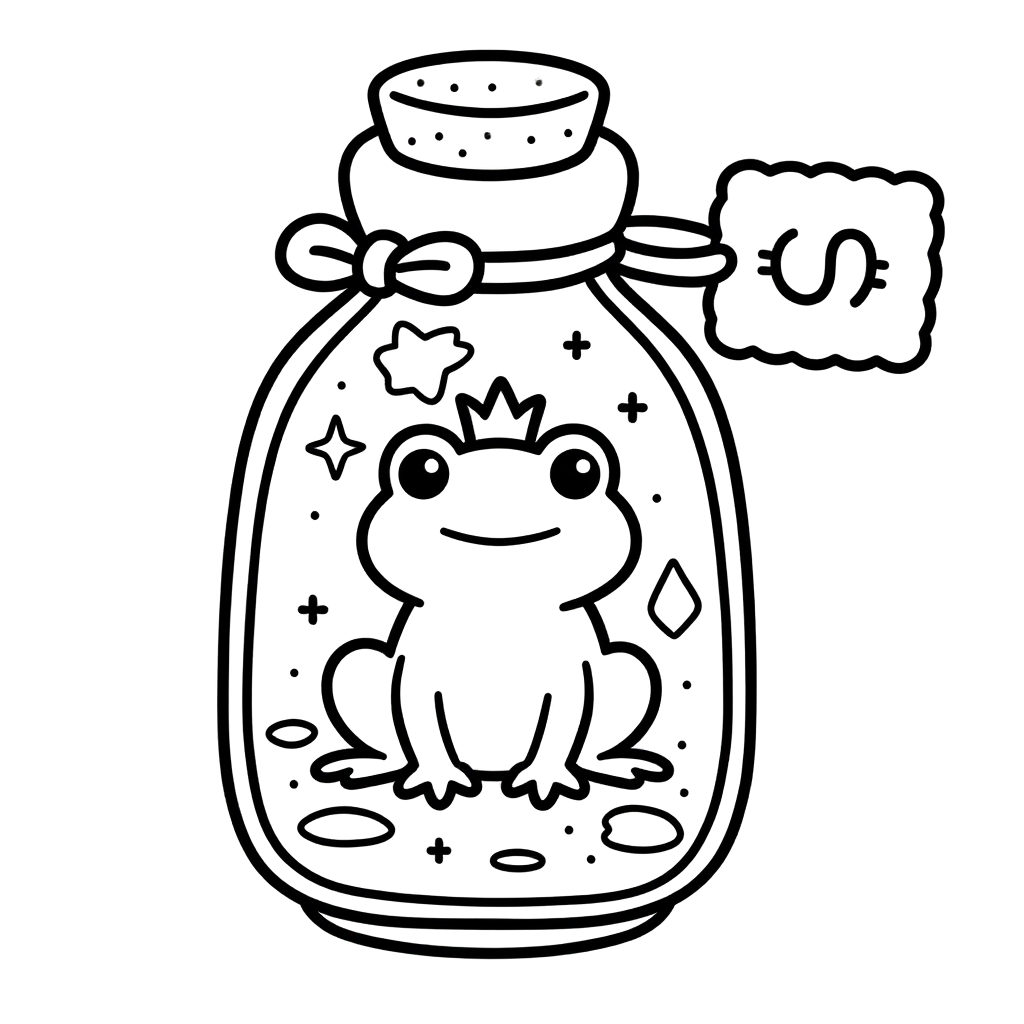 Spark imagination with this free printable frog-in-a-bottle coloring page, available in SVG, PDF, and PNG formats for maximum flexibility. The playful design includes a cheerful frog inside a jar with decorative stars and details, making it a fun and creative project for kids.