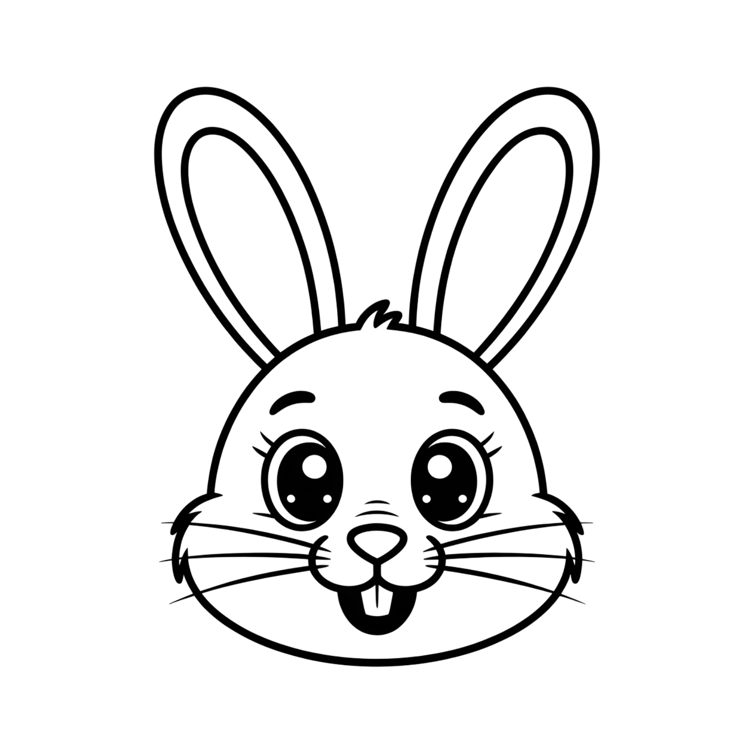 Happy bunny coloring page in SVG, PDF, and PNG. A smiling rabbit face with long ears, easy and fun for children.