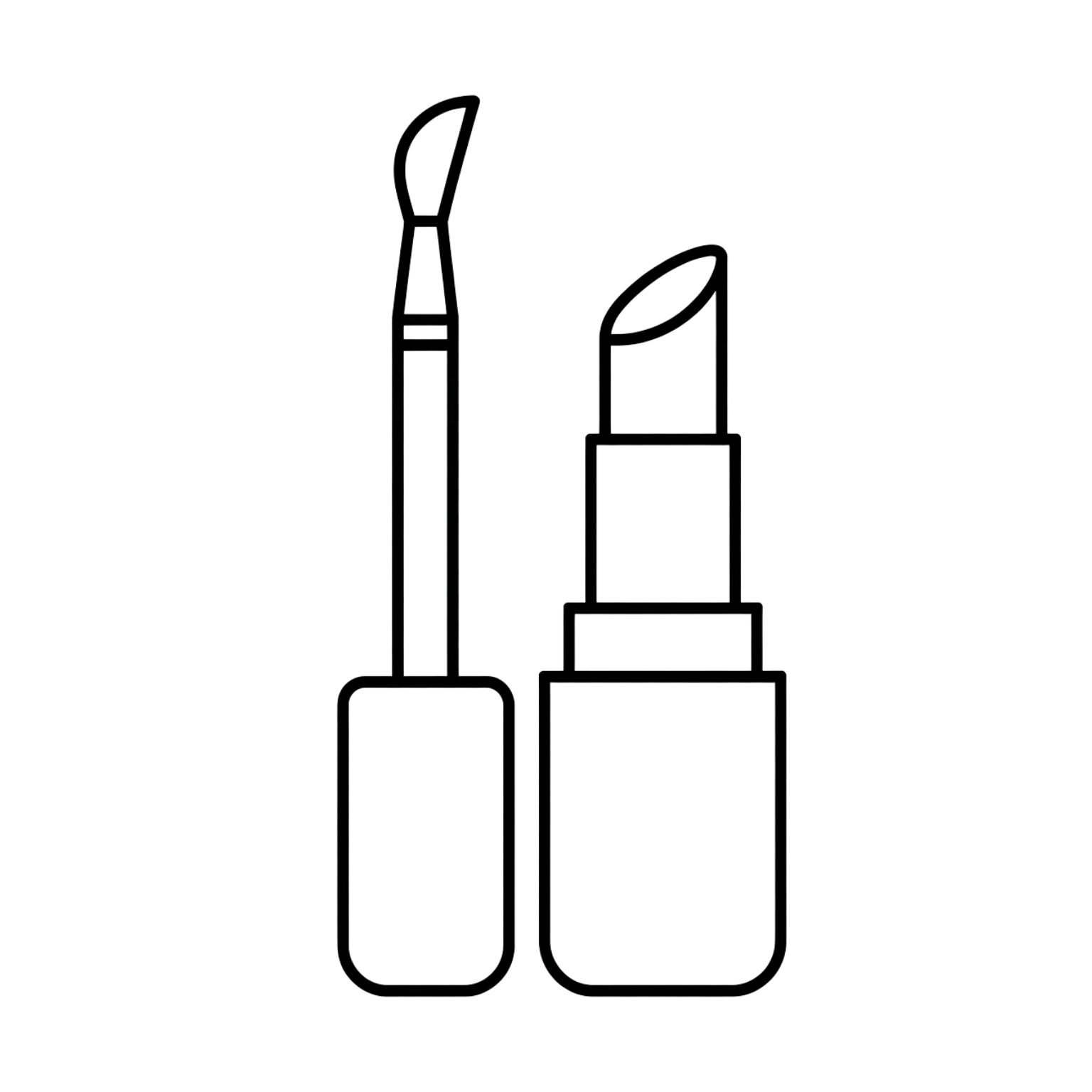 Lipstick coloring page in SVG, PDF, and PNG. Two lip products with detailed outlines, ideal for makeup lovers.