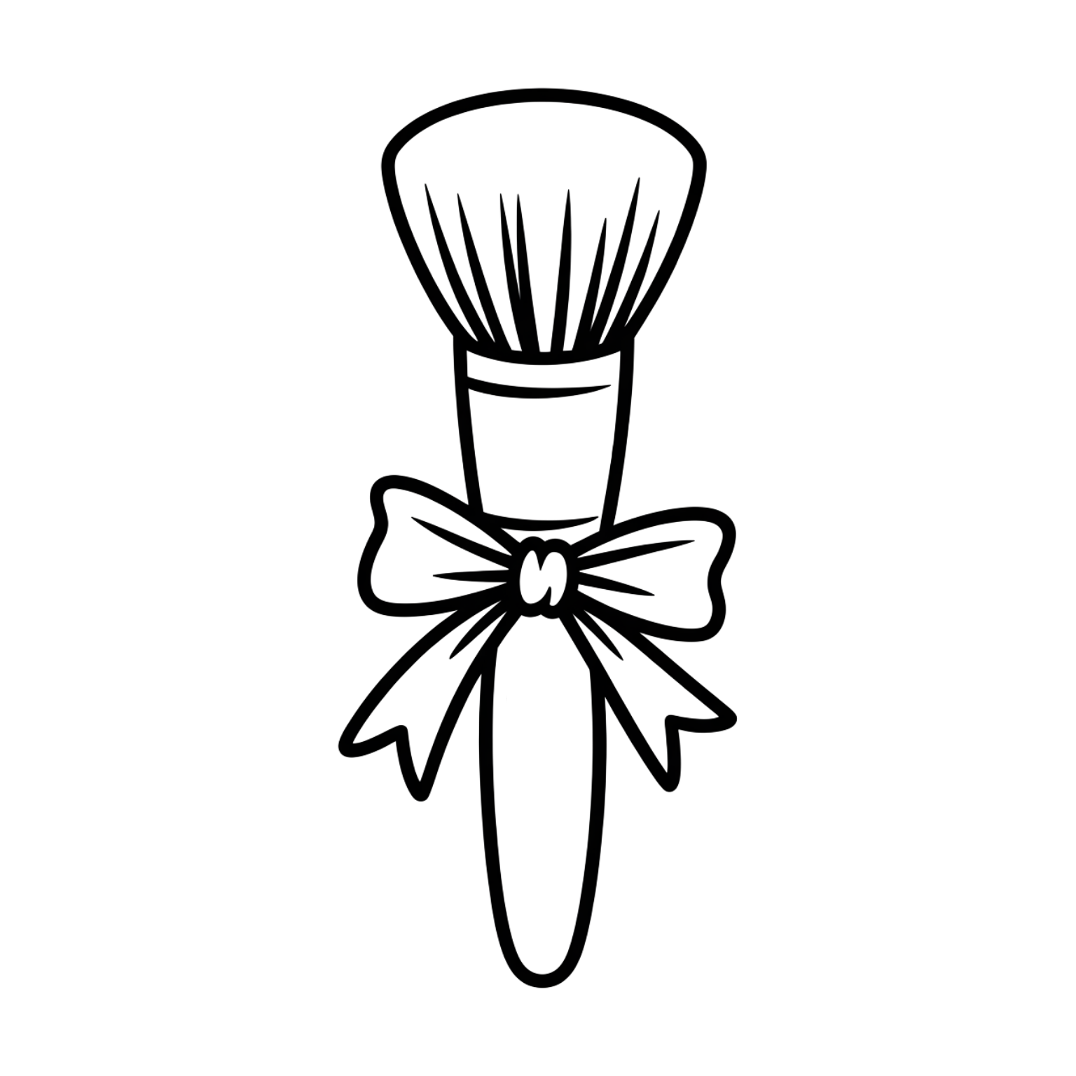 Makeup brush coloring page in SVG, PDF, and PNG. A fluffy brush tied with a bow, perfect for fashion-themed coloring.
